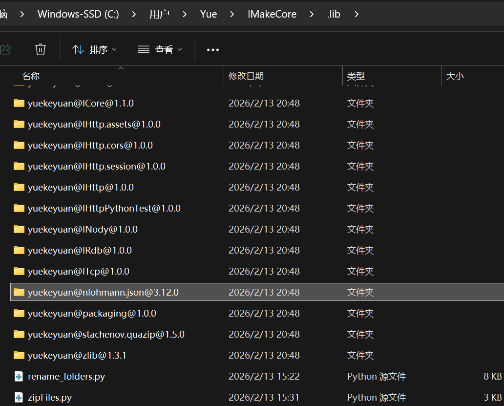 以上就是IMakeCore中的所有内置的库。此时我们看到库输出中有 nlohmann.json 库: