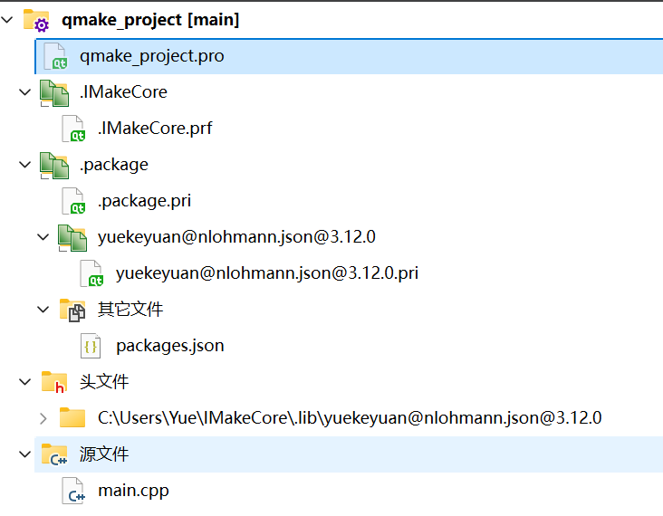 执行 qmake 之后,IMakeCore 也被集成到项目中了。此后用户可以在 packages.json 中添加需要的库即可。